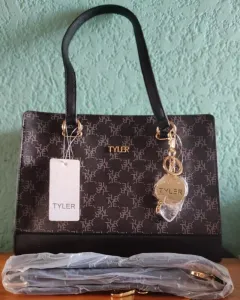 Bolsa negra. Bolsa de mano amplia , trae su correa para poder colgarla , un llavero con corazones de la misma marca