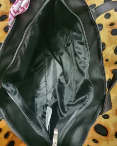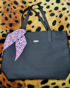 Bolsa grande de mano en color negro con pañuelo marca L'bel, en el interior cuenta solo con una bolsa pequeña con cierre, totalmente nueva y en perfectas condiciones.