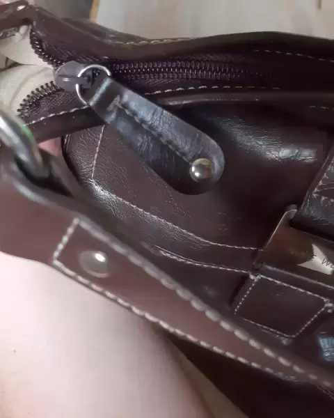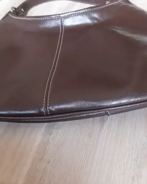 Bolsa de hombro color cafe,de piel con algunos detallitos que a simple vista no son notorios. La bolsa se uso 2 veces. En las esquinas tiene unas manchitas blancas.