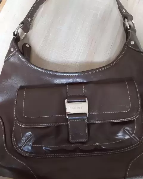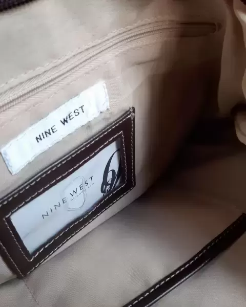 BOLSA NINE WEST. Bolsa de hombro color cafe,de piel con algunos detallitos que a simple vista no son notorios. La bolsa se uso 2 veces. En las esquinas tiene unas manchitas blancas.