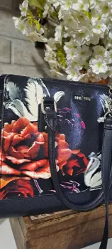 Hermosa bolsa marca nine West en excelente estado , negra con flores , 3 compartimentos muy bonita