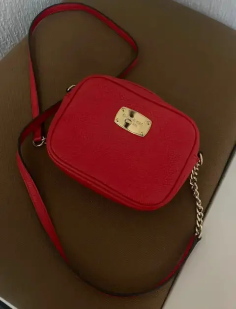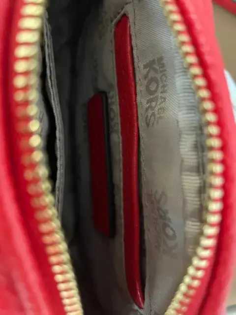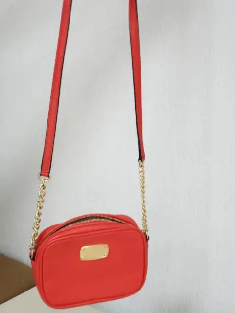 Bolsa Michael Kors pequeña con correa larga, roja, poco uso, en excelente estado. Sin detalles