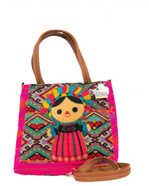 Bolsa petrita. Bolsa artesanal de petrita en reboso y yute. Medidas: 28X27X14