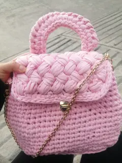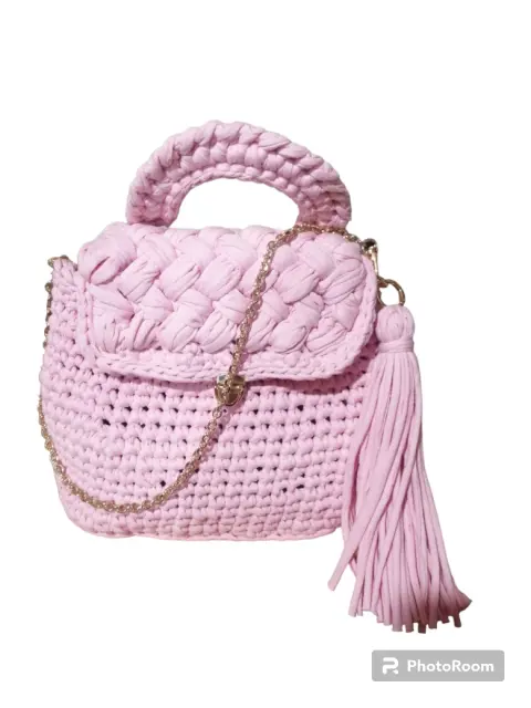 Bolsa tejida a mano. Preciosa bolsa tejida a mano , rosa pastel