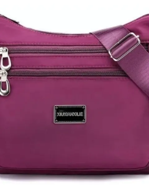 Bolsa tipo bandolera, color violeta. Bolso tipo bandolera, Color violeta, con varias bolsas, material Nailon, 28 cm de larga, ancha 12 cm y alta 20 cm. Puedo bajar un poco el precio ☺️