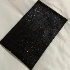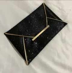 Bolsa tipo sobre negro con gliter. Cartera/bolsa tipo sobre Brillos negros y detalles en dorado, bastante ampliaMarca sheinNuevo