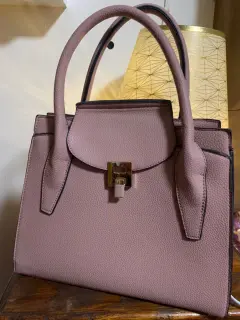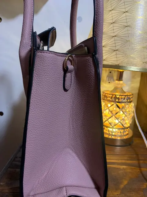 Bolsa tote. Bolsa tote, color rosa viejo, con seis compartimentos, de material vinil, juvenil y elegante