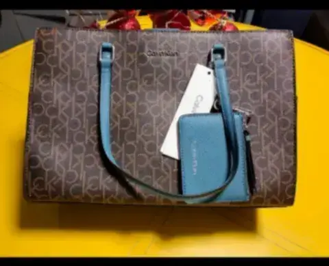 Bolsa Tote Marca CK original cuenta con su etiquetado con código de barras que certifica su autenticidad color café y verde menta totalmente nueva no tiene daños está súper hermosa 😍👠💋💄ÚLTIMO PRECIO ⚠️