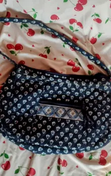 Bolso al hombro azul marino patchwork, como al usar tiene un mini bolsillo al frente, el interior es amplio tus básicos caben perfectamente.
