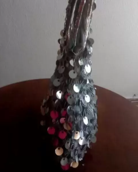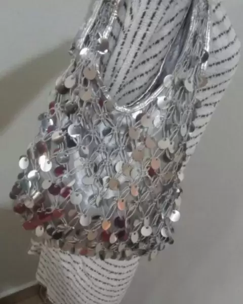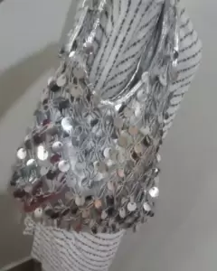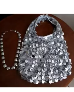 Bolso casual de fiesta y collar en color plateado, el bolso con multi- lentejuelas grandes, 33 cm de largo y 33 de alto