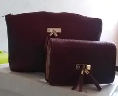 Bolso de mano con cartera. Bolsa de mano con cartera con muy buen espacio para monedas, billetes y tarjetas, para dama,
