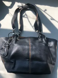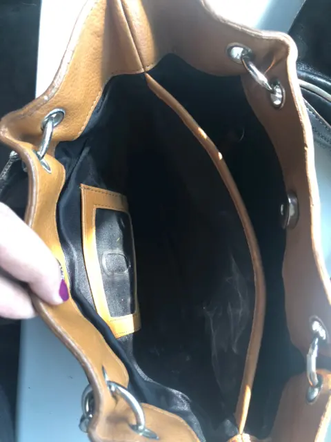 Bolso de mano de piel genuina pequeño. Tiene bolsas interiores y seguro exterior. Cabe perfectamente cartera, celular, llaves y maquillaje