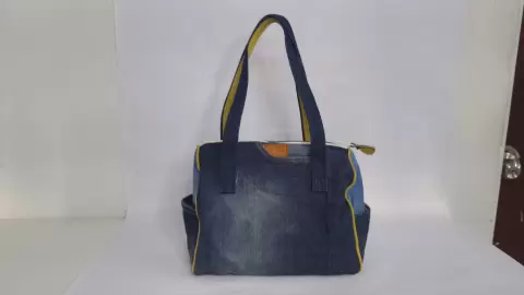 Hermoso bolso de mezclilla con vivos color mostaza , medidas largo 30cm, alto 22 cm, ancho 12 cm.Ideal para salidas casuales o informales.