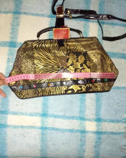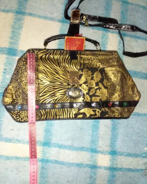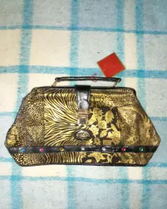 BOLSO DORADO CON PIEDRAS. Incluye lazo para colgarseEn la base tiene marcas, pero no limitan su uso