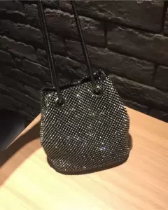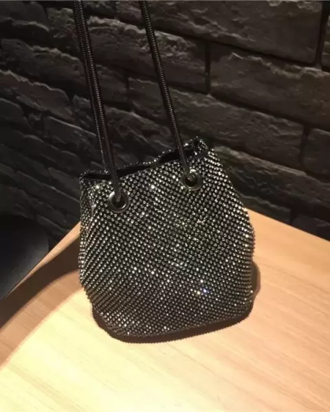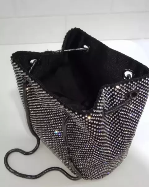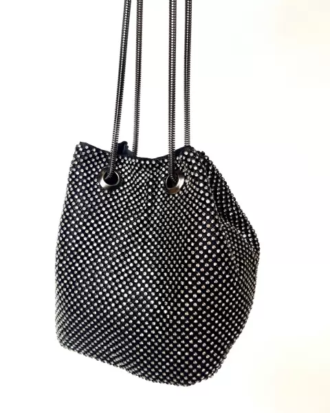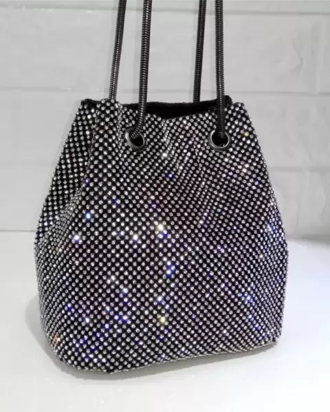 Bolso negro. Bolso de hombro con cadena y diamantes de imitación para mujer, cartera de mano con cristales, de noche, para fiesta.