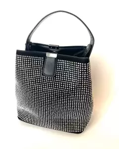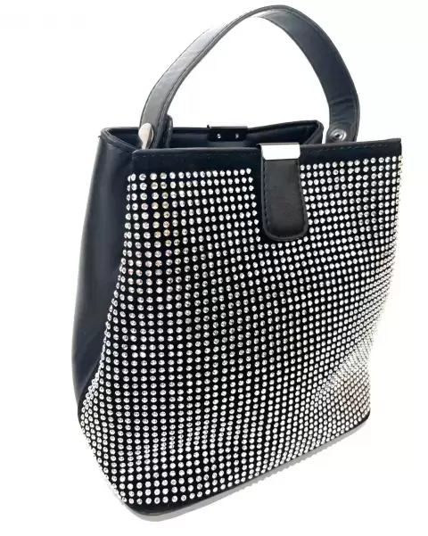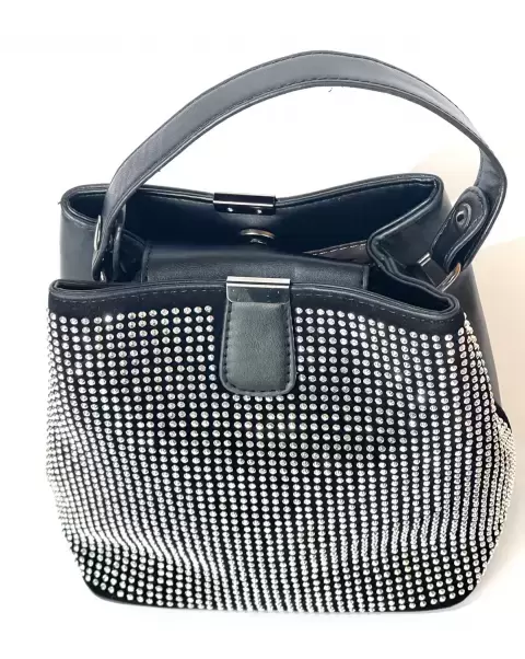 Bolso negro. Bolso de hombro de piel sintética para mujer, bandolera pequeña de diseñador de marca famosa, con diamantes.
