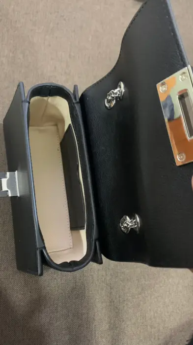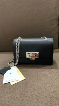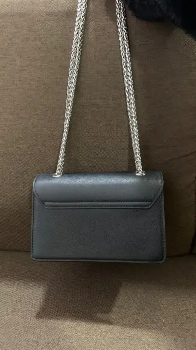 Hermoso bolso crossbody mini de piel negro 😍👜 sus medidas son 17 cm de largo por 11.5 de alto su cadena es de 54 cm incluye bolsa cubre polvo.mi niño le corto la etiqueta de el bolso pero esta nuevo en excelente estado sin uso.