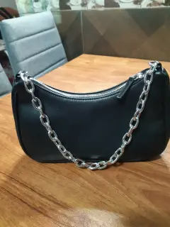 Bolso pequeño con cadena. Bolso pequeño para mujer, con cadena color plateado. Imitación piel.