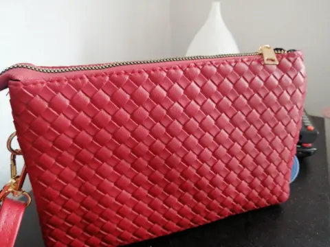 Bolso color rojo, puede ser cruzado o de mano, nuevo, tamaño alto 16 cm, ancho 23 cm.