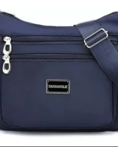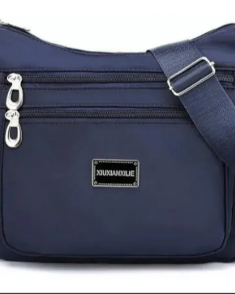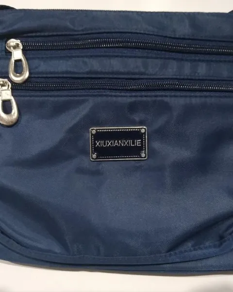 Bolso tipo bandolera, color azul marino. Bolso tipo bandolera, Color azul marino, con varias bolsas, material Nailon, 28 cm de larga, ancha 12 cm y alta 20 cm. Favor de preguntar disponibilidad. Puedo bajar un poco el precio ☺️