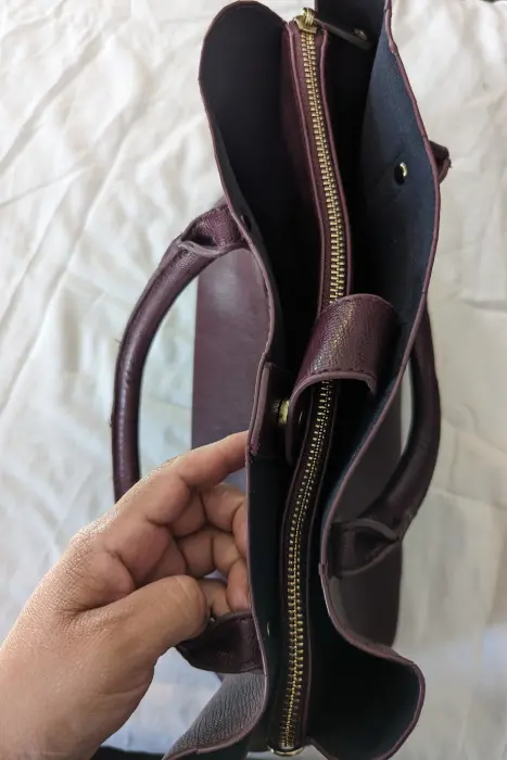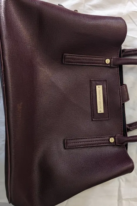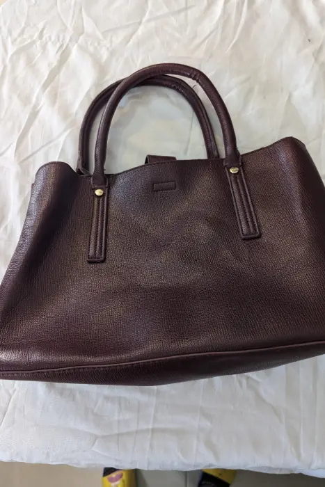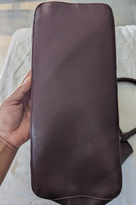 Bolso tote en tono burdeos, de diseño atemporal y confección de alta calidad. Espacioso y práctico, con detalles metálicos discretos que realzan su sofisticación. Perfecto para llevar todo lo que necesitas con estilo, desde la oficina hasta un evento casual. Ligeras muestras de uso en la parte inferior y superior el resto en excelente estado, sin correa.
