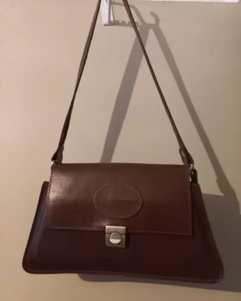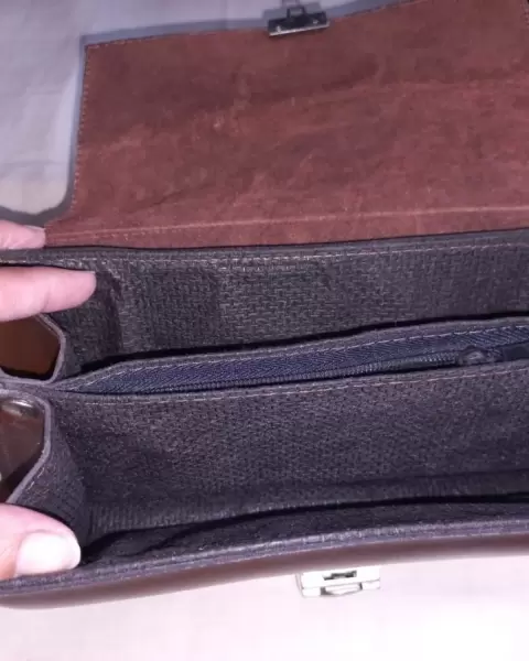 Linda bolsa de mano color café de piel F Romo broches y cierres en perfecto estado