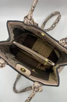 Si buscas practicidad y elegancia estás buscando nuestra bolsa color rosa. Gracias a su doble división interna todas tus cosas irán seguras y ordenadas mientras que con su departamento exterior tendrás lo más necesario a la mano. Con detalles en material serpiente en su asa larga ajustable. Su diseño es dinámico y sofisticado por lo que lucirás maravillosa en cualquier lugar.