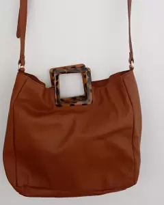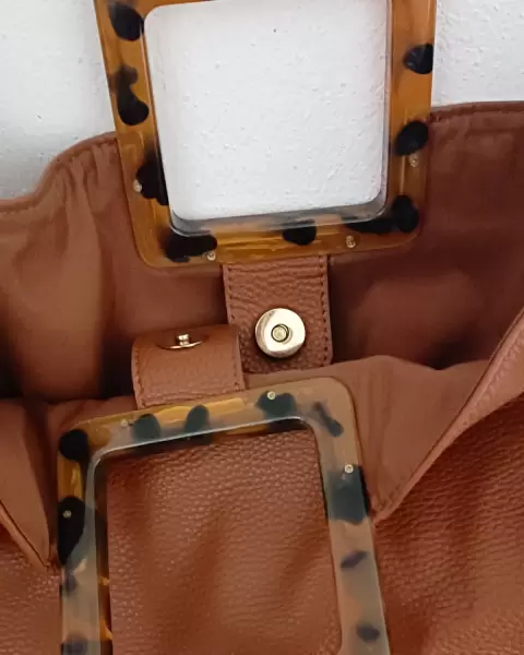 Hermosa bolsa color café con detalles de animal print en las asas, también se puede usar en su modo largo con la cinta ajustable, es muy amplia.