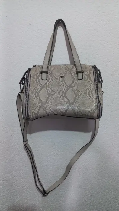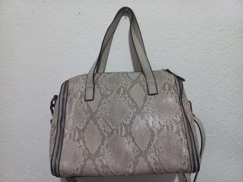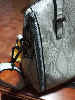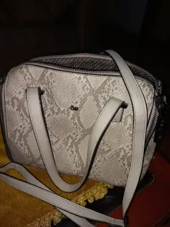 Hermosa bandolera pequeña. Bandolera pequeña con estampado de serpiente de piel sintética texturizada con herrajes plateados