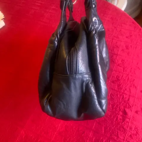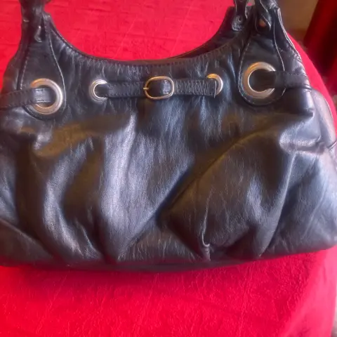 Hermosa bolsa de piel color negro. Hermosa bolsa de corte vacuno, tres compartimentos, 32X18X13 cm, herrajes plateados, piel muy suavecita, no pesa, 100% piel