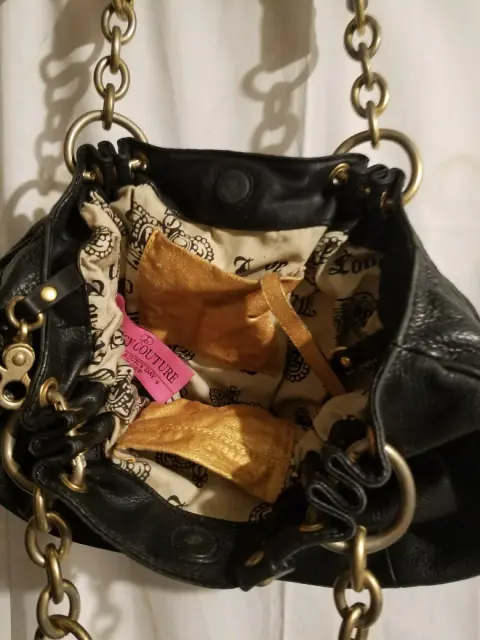 Juicy Couture leather handbag en buenas condiciones de uso sin detalles único modelo disponible 10 pulgadas de largo 7 pulgadas alto