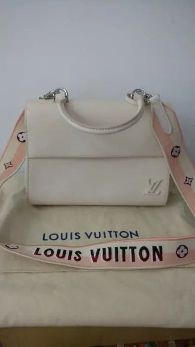 Louis Vuitton, LV women Cluny mini handbag Epi Grained, Bolso mediano con tres divisiones todo cuero, color beige, incluye Strapp bordado, cubre polvo y certificado. Herrajes grabados, código internacional.