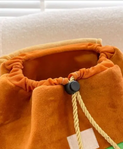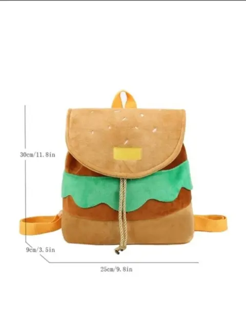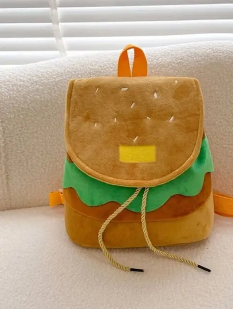 Bonita mochila con diseño de hamburguesa .Cordón y solapa frontal, de tamaño pequeño