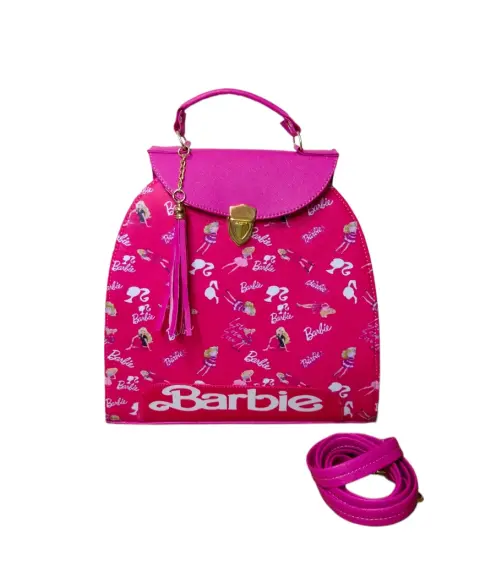 Mochila juvenil estilo Barbie. Hermosa mochila modelo Barbiese puede usar como crossbody, mochila y al hombroMedidas: 30x28x12Trae strap largo desmontable y ajustable.Marial: Prada estampadoSu compra es 100% segura y se envia al día siguiente