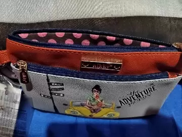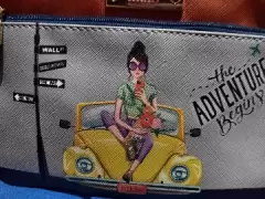 Muy bonita y practica monedero nikki nicole cabe un celular trae muñequera completamente nueva, muy practica
