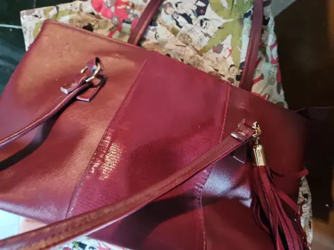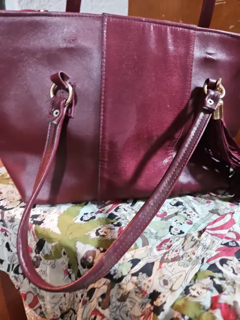 Bolsa de mano en color vino, buen estado. Elegancia, discreta. Forro intacto