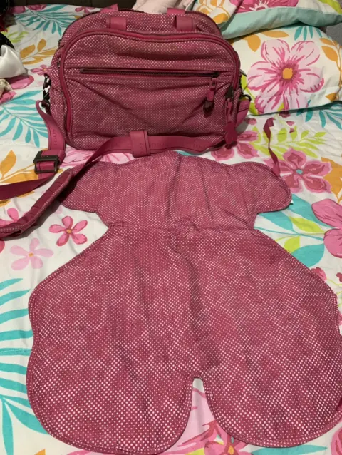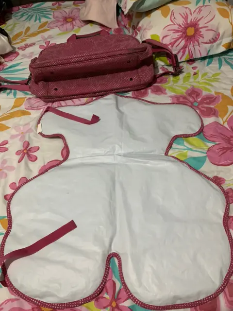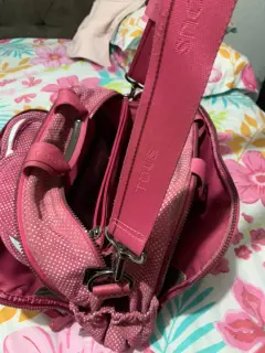 Bella y funcional pañalera Tous. Pañalera Marca Tous con grandes compartimentos y cambiador; para que lleves mamilas toallas pañales, pomadas, gel, sus papillas, con herrajes súper resistentes