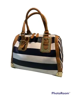 Bolsa Aldo prácticamente nueva. 100% Poliuretano, color azul marino y blanco con detalles dorados cuidados, con poco uso.