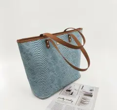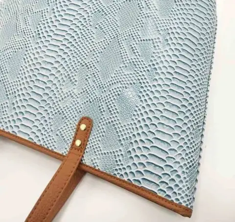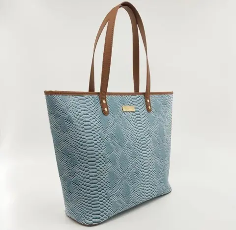 Bolsa grande tipo piel de víbora,color azul cielo