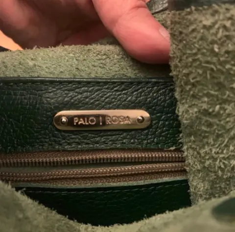 Hermosa, de piel, color verde botella de la marca palo de rosa, largo 32 cm, de altura 43 cm y ancho 18 cm. en perfectas condiciones, la puedes mandar pintar a tu gusto