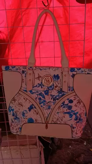 Bolsa blanca de flores. Bolsa floreada azules buena calidad nueva tiene dos bolsas pequeñas de compartimiento adentro y afuera