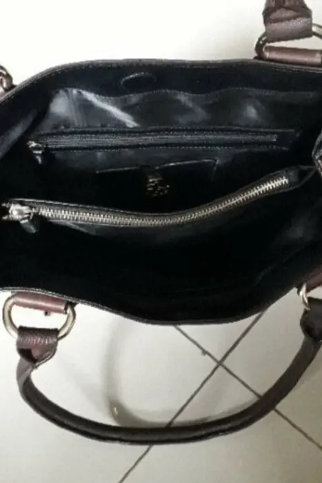 Bolsa DKNY, color cafe, piel con tela, tamaño grande, viene amplia...envio en caja reciclada