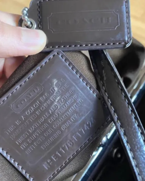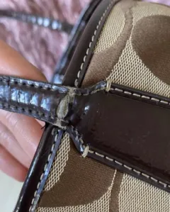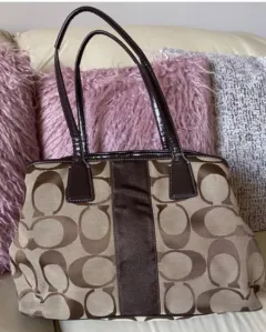 Bolsa coach tamaño grande, le caben muchas cosas las tiras se encuentran un poco desgastadas pero lo demás se encuentra en buen estado