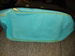 Bolsa Coach En tela color azul claro Asas y detalles en piel verde pistache 2 bolsas a los costados1 pequeño monedero frontal basta ampliaNueva sin etiquetas