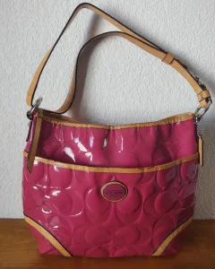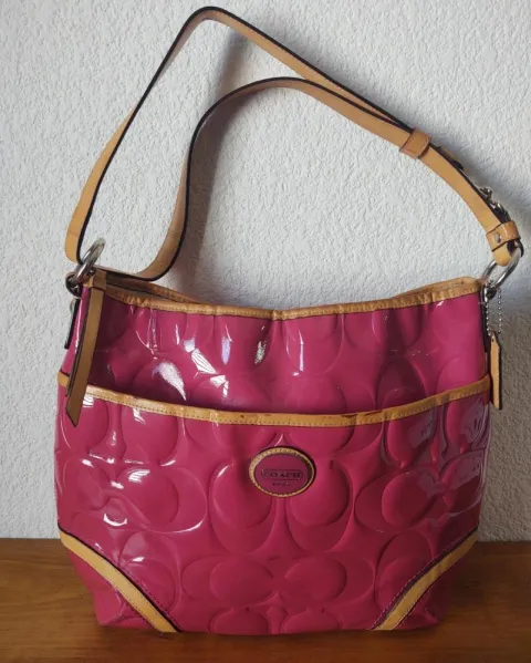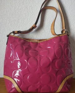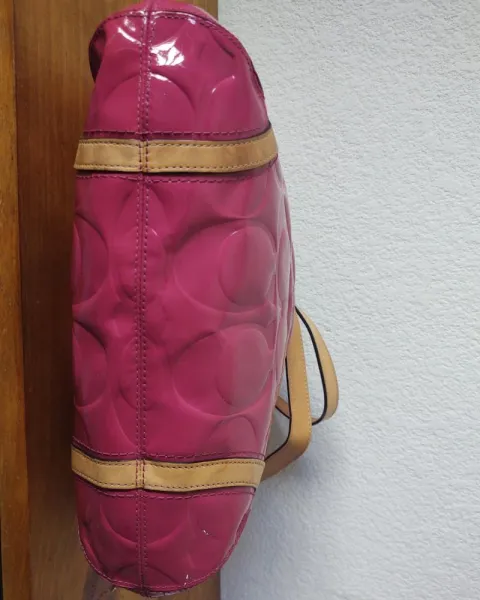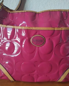 Bolsa Coach de Charol. Hermosa y Elegante Bolsa Coach color Rosa esta Divina su color brillante su asa perfecta tiene opcion de usar mas larga ,tiene su tag material charol con acabados en cuero, mini detalles Normal que no afectan uso oscurecimiento en cuero ( es Usual en ese material ) tal cual fotos⭐Bienvenida Wuapisima⭐Te invito a Seguirme y ver el resto de mi armario ⭐