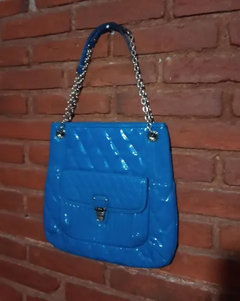Bolsa coach de charol. Bolsa coach azul de charol acolchada completamente nueva solo se reventaron algunas partes debejo de la tapa y en una asa