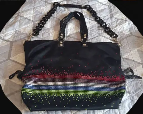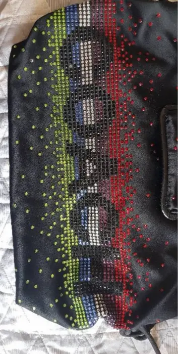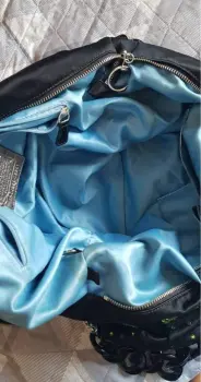 Bolsa Coach Puppy Edicion LimitadaColor negro en satin sin rasgaduras, manchasDetalles en Piedras , le falta 1 en la parte del logo y otra en la trasera no afecta en su uso y casi no se nota .Asas con detalles en charol en buen estadoStrap original de plasticoEl interior necesita lavarse y queda como nuevo (un poco sucioBolsa bastante Amplia