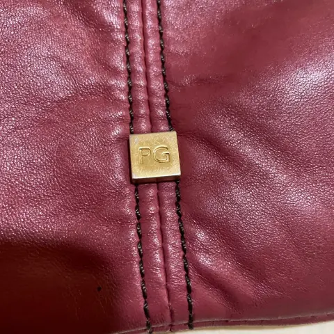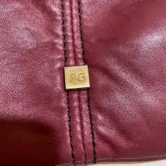Bolsa color cereza Purificación Garcia. Bolsa de piel color cereza con asa en café. Bolsa de hombro. En buenas condiciones. Con detalle en el forro interior y algunas manches por el uso. La piel es súper suavecita. Mide 40 cm x 35 cm.