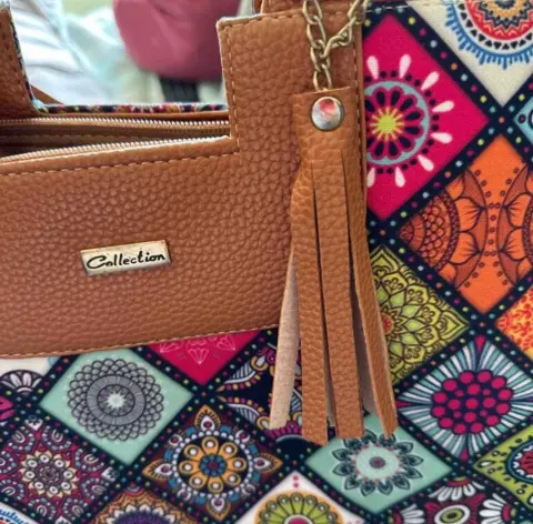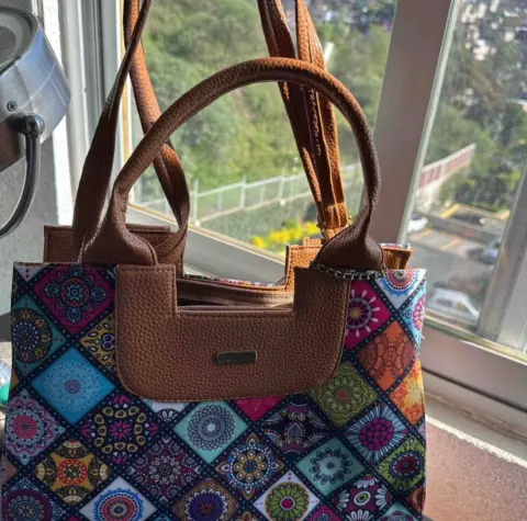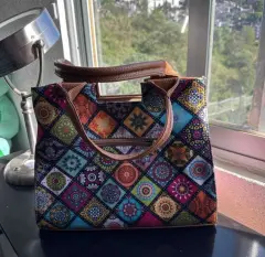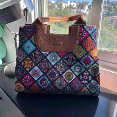 Bolsa con mandalas colores. Amplia bolsa con asas y correa larga en perfecto estado. Solo se usó una vez