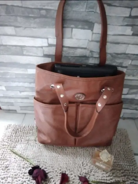 SEMINUEVA! práctica bolsa de mano color café claro, con bolsas al frente, le cabe una laptop (la mia es de 16", pero de 14" cabe perfecto), al interior doble compartimento, tipo piel. En perfecto estado, sin peladuras. Se uso un par de veces.